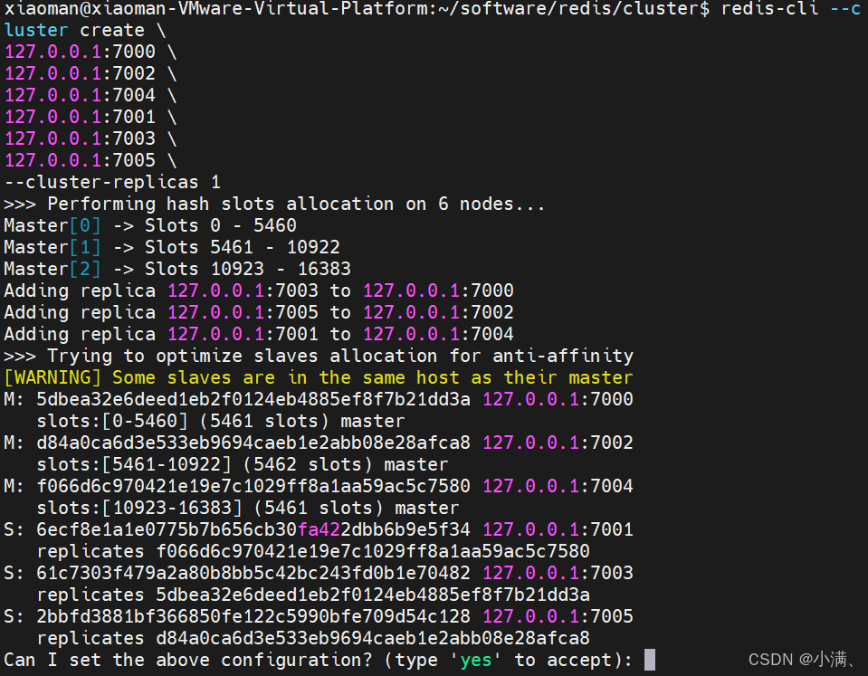 redis-cli --cluster create ... --cluster-replicas 1 --cluster-yes