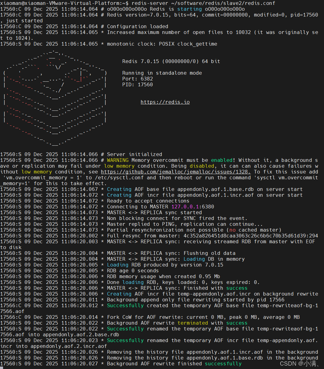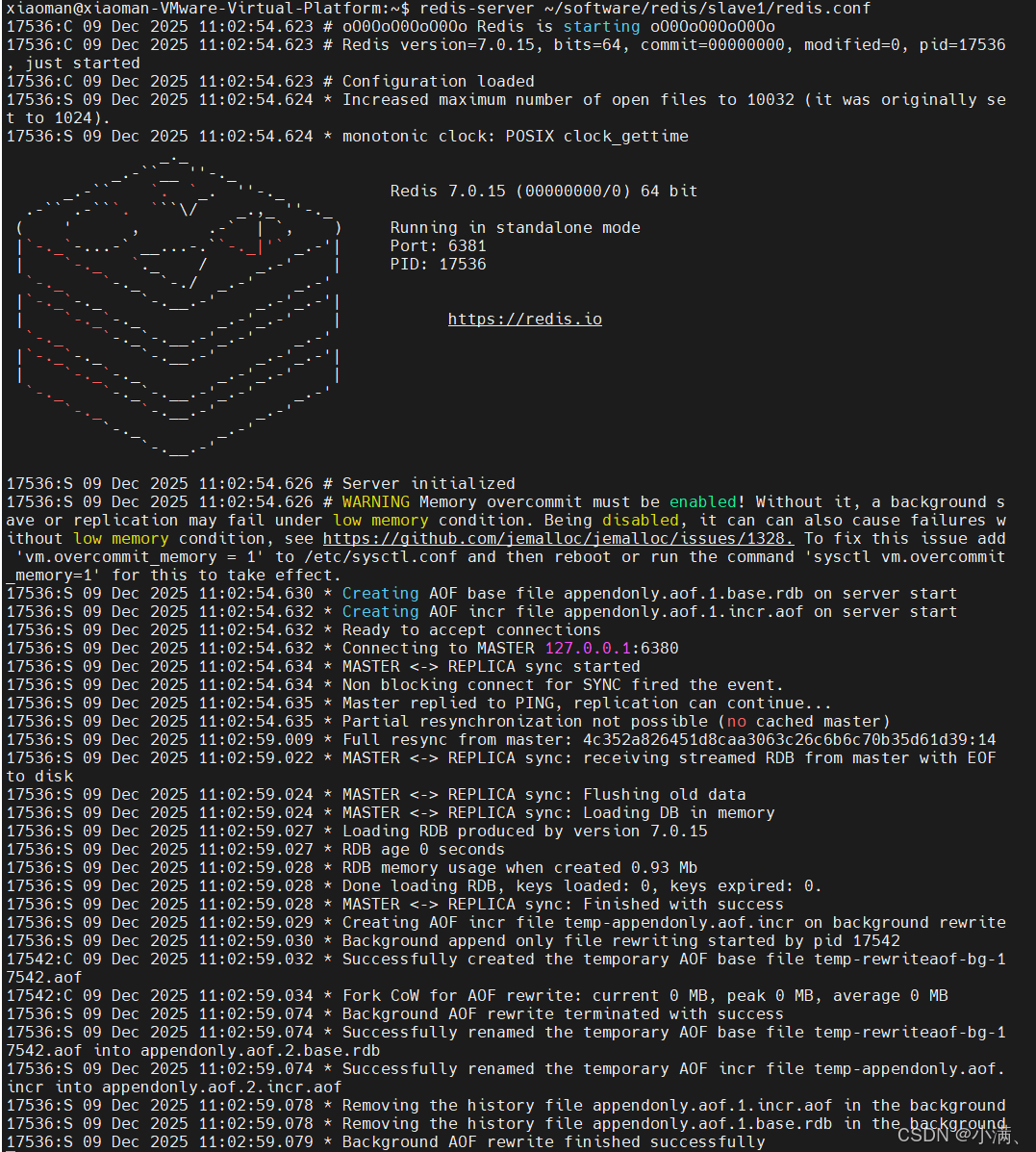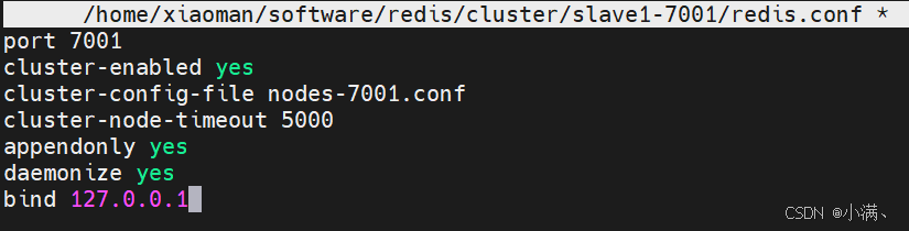 redis-server /home/xiaoman/software/redis/cluster/slave1-7001/redis.conf