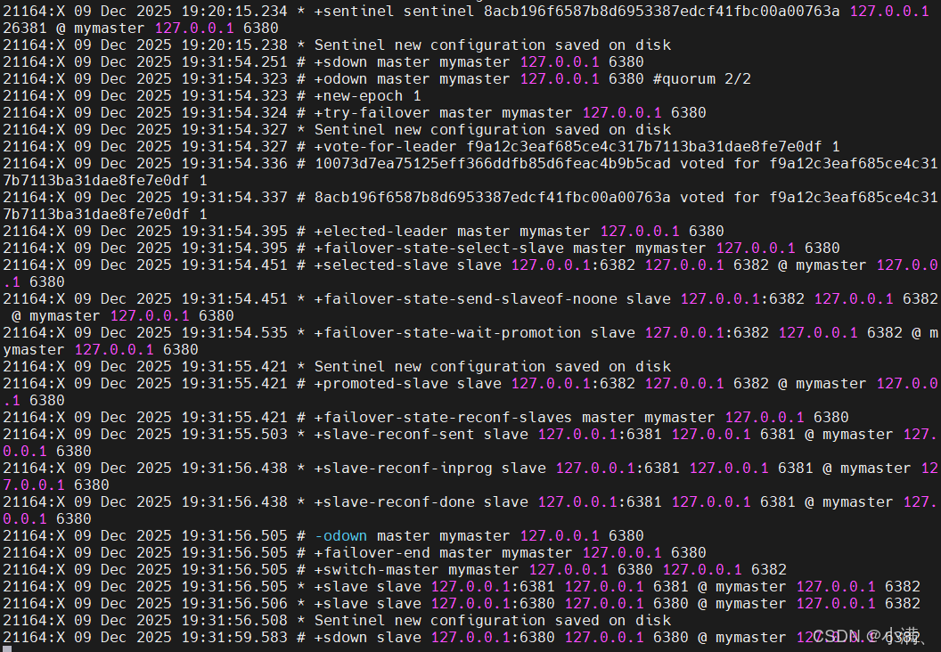**哨兵(Sentinel):**实现主从故障检测与自动主备切换。