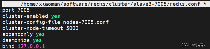 redis-server /home/xiaoman/software/redis/cluster/slave3-7005/redis.conf