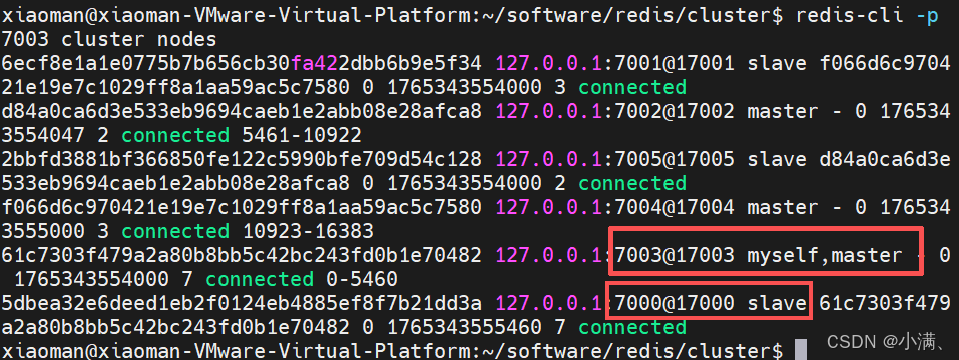 redis-server /home/xiaoman/software/redis/cluster/slave2-7003/redis.conf