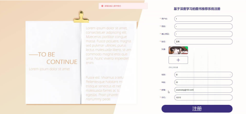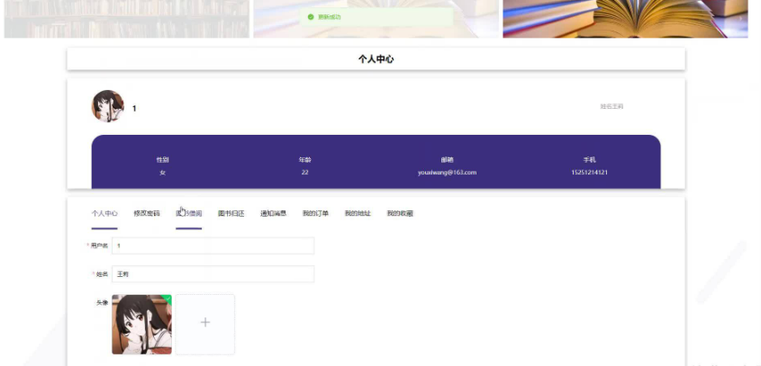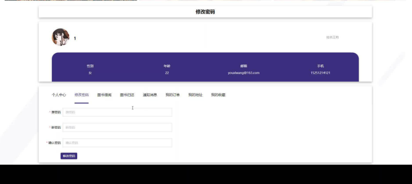 用户管理模块:提供用户注册、登录、个人信息修改等功能。同时,系统还记录了用户的阅读历史、收藏列表、评分数据等信息,为后续的图书推荐提供数据支持。