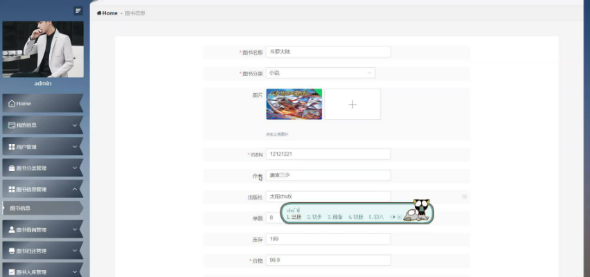 图书信息管理模块:提供图书的添加、修改、删除、查询等功能。系统可以通过爬虫技术从各大图书网站采集图书信息,并进行数据清洗和整理,确保图书信息的准确性和完整性。同时,系统还支持图书的分类管理、标签管理等功能,方便用户进行图书的筛选和查找。