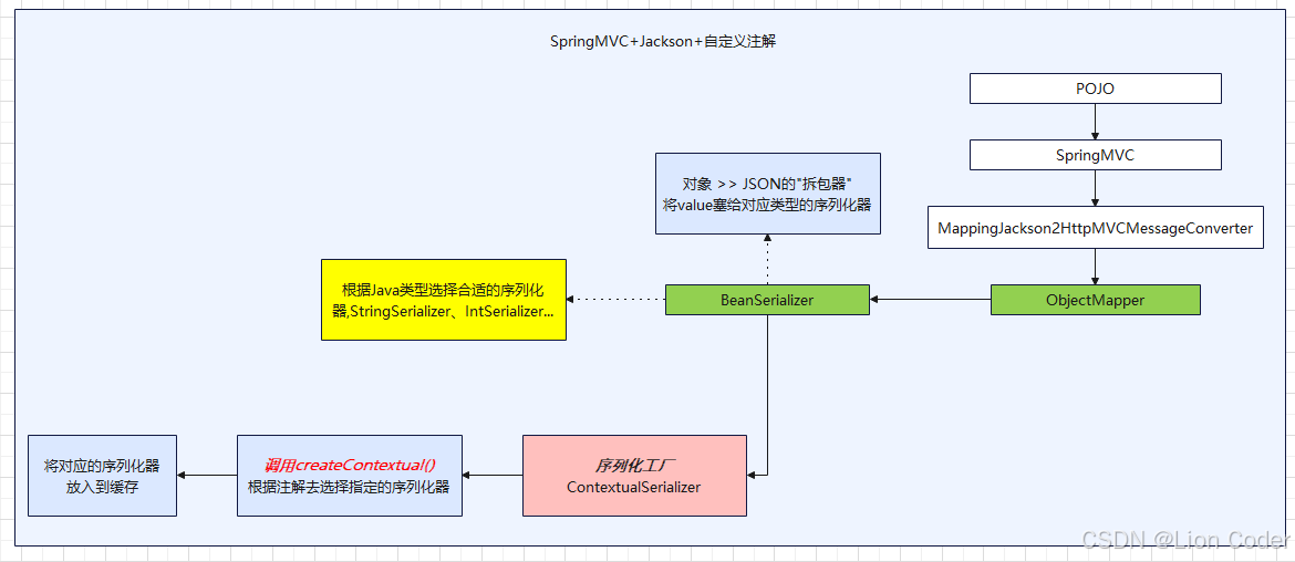 在将后端的对象返回前端之前, 会通过SpringMVC 的 默认Jackson 序列化器来实现数据的json化处理, 会根据字段类型查找对应的序列化器
