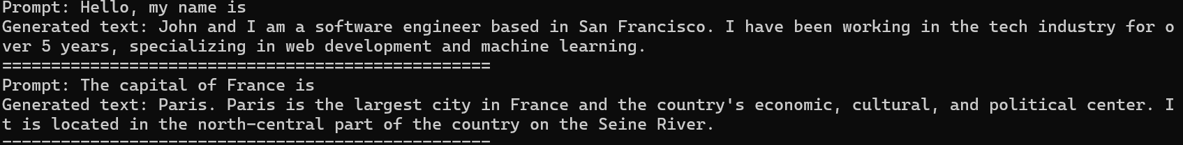 在完成环境安装后,可以通过一个最小可运行的示例脚本验证 vLLM-Ascend 是否能够正常加载模型、初始化昇腾 NPU,并成功执行推理任务。以下示例使用一个轻量级模型进行测试,便于快速确认环境是否正常。