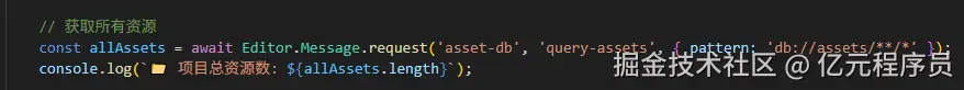 const allAssets = await Editor.Message.request('asset-db', 'query-assets', { pattern: 'db://assets/**/*' });