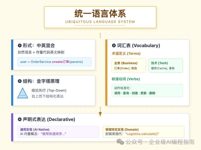 词汇表:使用过 AI 的人都知道,其实大多数场景自然正常表达即可,涉及存量方法调用,尽量用方法名英文单词替代中文。核心一个要领,言简意赅