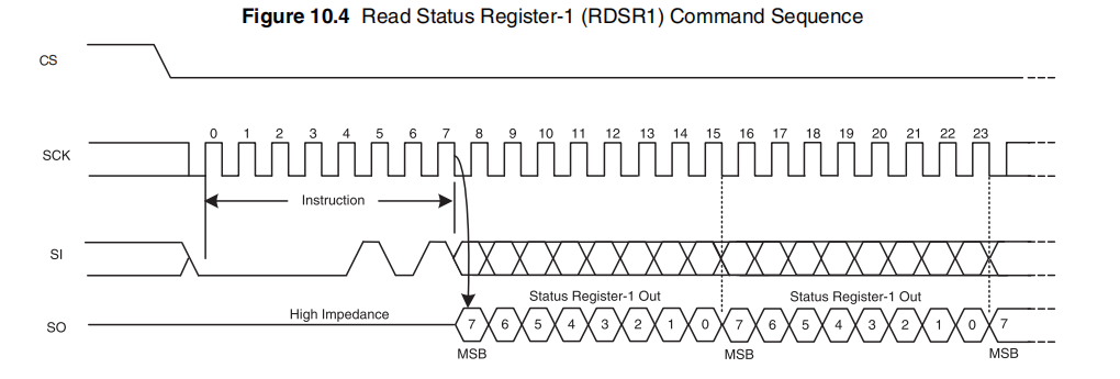 - 如果命令向主机返回读取数据,设备将继续发送数据传输,直到主机将CS信号拉高。在读取数据序列中的任何传输之后,CS信号都可以被拉高,这将终止该命令。