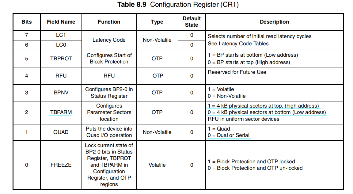- 紧随指令之后的所有传输宽度由发送的指令决定。后续传输可以继续仅在 SI 或串行输出(SO)信号上进行单比特串行传输,也可以在 IO0 和 IO1 信号上以每次传输两比特(双模式)进行,或者在 IO0-IO3 信号上以每次传输四比特(四模式)进行。