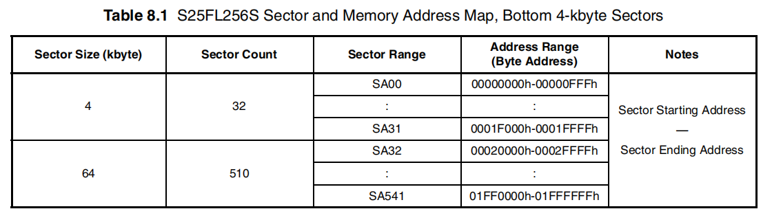 主闪存阵列被划分为称为扇区的擦除单元。扇区的组织形式可采用4KB与64KB扇区的混合组合,或采用统一的256KB扇区。