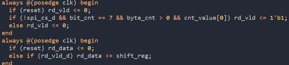 if (!spi_cs_d && bit_cnt == 7 && byte_cnt > 0 && cnt_value[0]) rd_vld <= 1'b1;