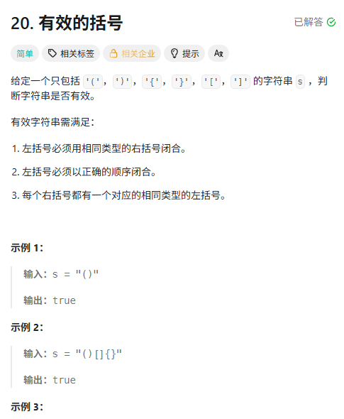 这题就是利用栈的特性,如果是左边的括号就加入栈中,否则进行匹配,匹配不上就return false