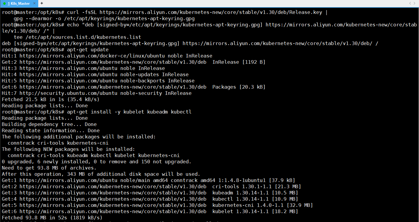 echo "deb [signed-by=/etc/apt/keyrings/kubernetes-apt-keyring.gpg] https://mirrors.aliyun.com/kubernetes-new/core/stable/v1.30/deb/ /" | tee /etc/apt/sources.list.d/kubernetes.list