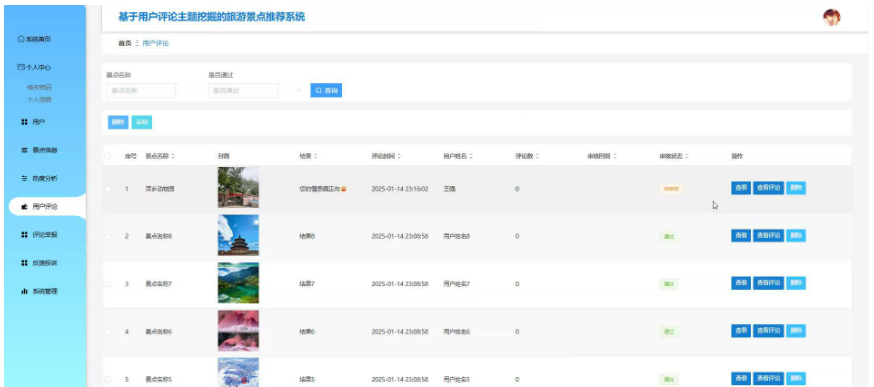 用户评论挖掘:系统通过文本挖掘算法对用户评论进行深度分析,提取有价值的信息。例如,分析用户评论中的情感倾向,了解用户对景点的满意度;提取关键词频,了解用户关注的热点话题;分析评价维度,了解用户对景点的具体评价方面等。