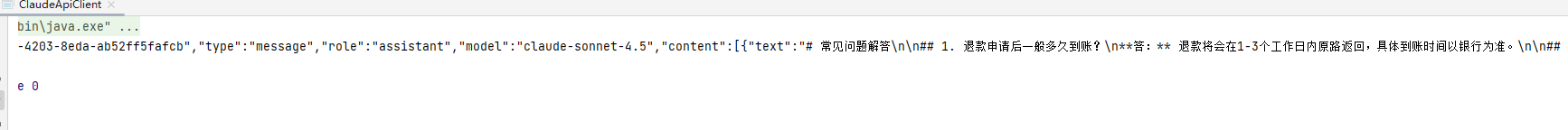 运行上面的代码后,通过控制台输出可以看到,在返回的结果中与问题最相近的答案在第一条