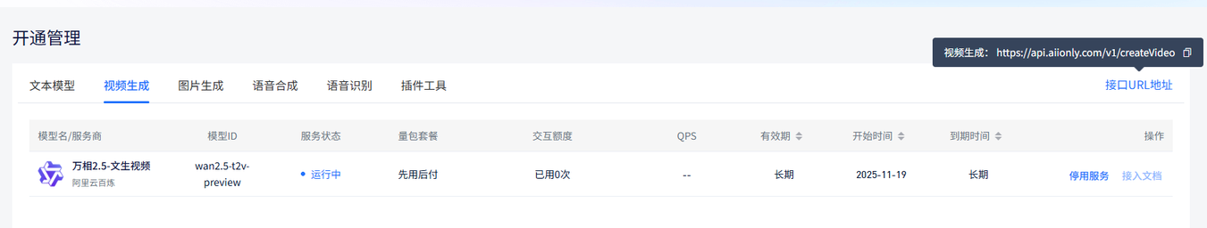 点击我的开通,在下面的开通管理菜单列表中就能看到开通的这个模型服务了