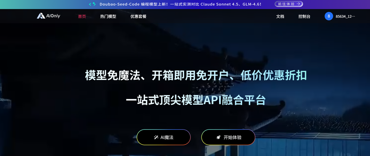 在各个大模型能力边界不断向前突破,飞速发展的今天,企业对应用接入大模型,快速验证业务的价值,并提升现有业务的价值等方面的诉求也越来越多。如何让企业尽快的对接各类大模型能力,2025年出现了一种新的大模型应用开发模式,也是众多的大模型厂商在探索过程的一种新的实践模式,那就是大模型聚合平台,比如大家熟悉的阿里云百炼,硅基流动等。对于应用开发者来说,只需要注册账号得到一个apikey即可快速实现对接各种主流的大模型能力,从而快速接入应用中,本文介绍另一款比较热门且功能强大的一站式大模型API平台AiOnly。