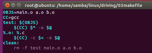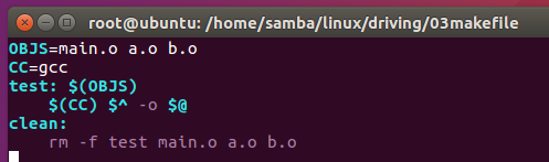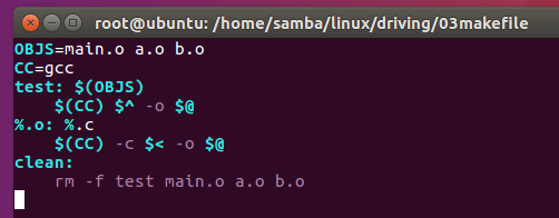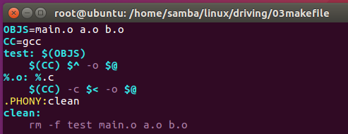 如下图makefile文件,使用%.o: %.c,这种模式下使用make命令可以指定仅编译哪一个.c 文件