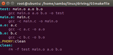 作用:Makefile是工程管理,如果编译的c文件很多,可以使用Makefile减少工作量;只需要执行一个make命令即可编译所有的c文件