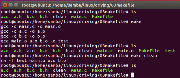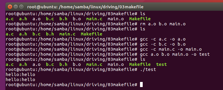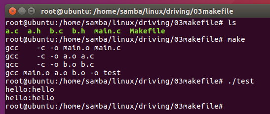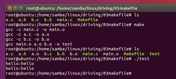 直接在当前目录下使用make命令,即可生成可执行文件test,