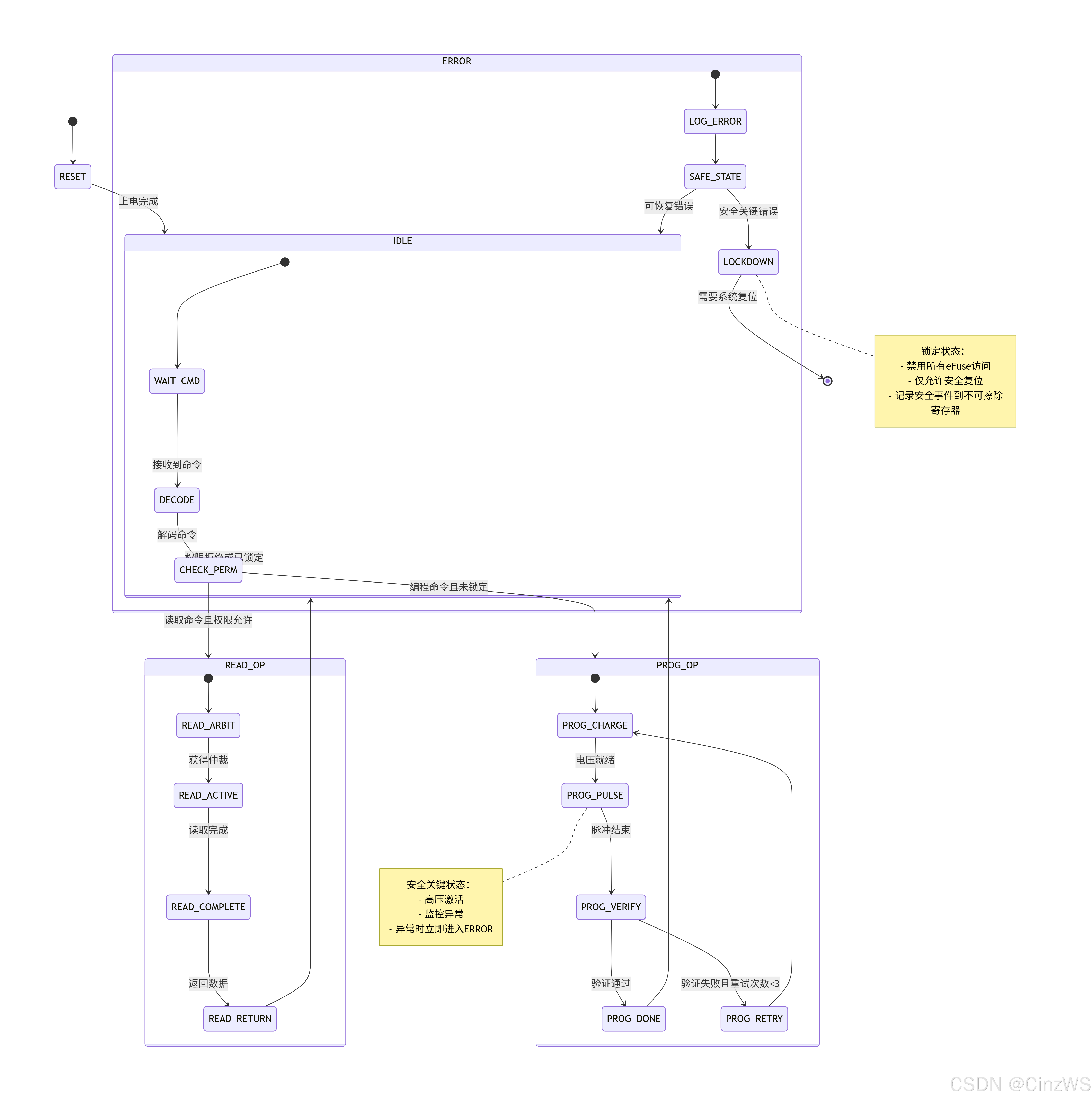 eFuse控制器的核心是一个复杂的安全状态机,确保在任何异常情况下都不会泄露敏感信息或允许非法操作: