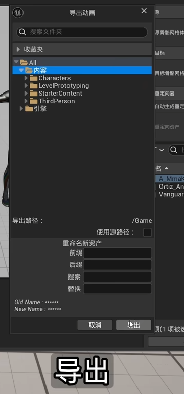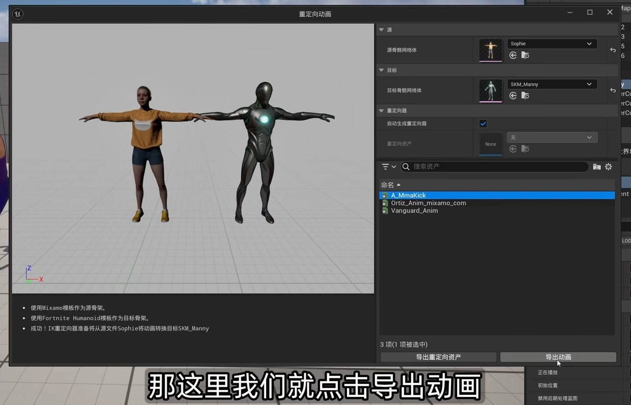 一键重定向 :选择好源模型和目标模型,直接将动画导为目标模型的动画