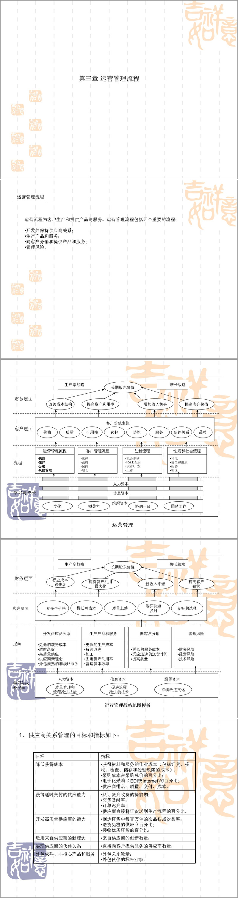 - 运营管理流程:关注供应链、生产、分销、风险管理的效率与成本。