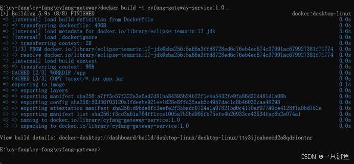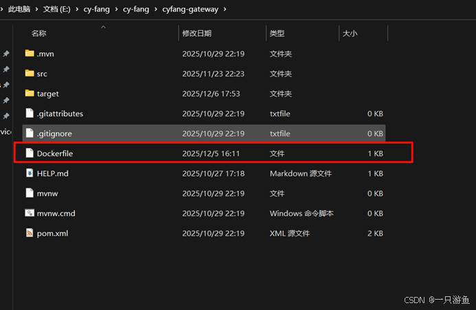 镜像:指定使用本地或远程 Docker 镜像 cyfang-gateway-service,标签为 1.0。