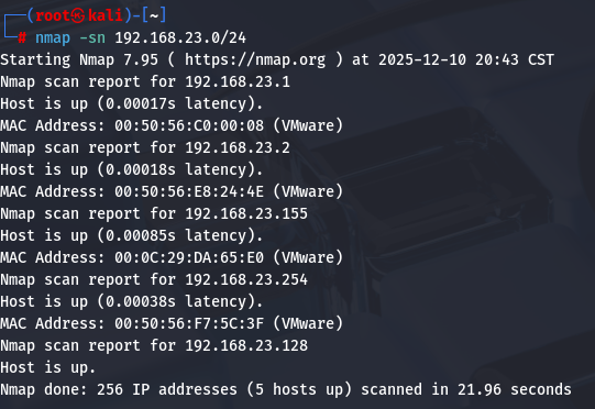 那么攻击机IP为192.168.23.128,靶场IP192.168.23.155