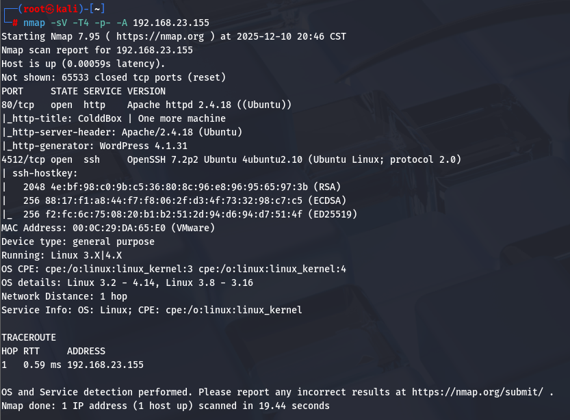 发现 4512 端口开放着 ssh 服务,可能是因为管理员为了安全将工作端口 22 改到了 4512