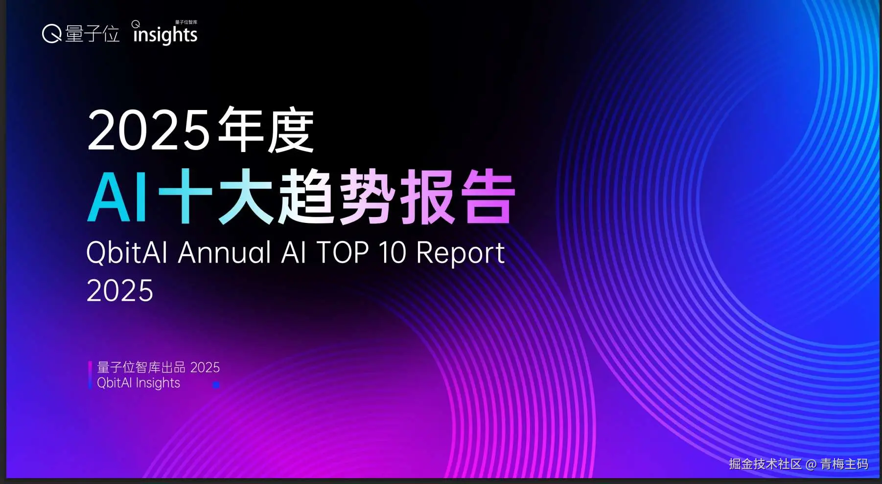 就在昨天,量子位智库最新发布了《2025年度AI十大趋势报告 》报告。这份报告基于全球AI 技术前沿动态,梳理出 2025 年将深刻影响产业和社会的十大关键趋势。