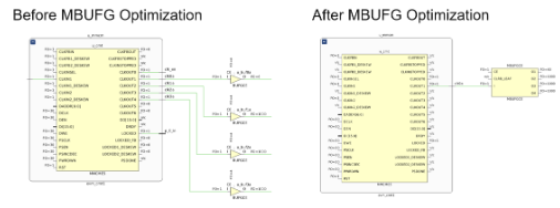 复制驱动多个输出缓冲器的触发器;基于反馈环路,根据MMCM补偿属性的变更进行更新;若仅使用双端口RAM的一个输出,则将其重定向为单端口RAM;在可能的情况下,针对面积优化SRLC32E、SRLC16E、ODDR、IDDR、CARRY4单元;移除未使用的IDELAYCTRL,并对输入输出进行分组,使其由最优数量的IDELAYCTRL控制;插入输入缓冲器和输出缓冲器,以确保特定单元的连接合法性。