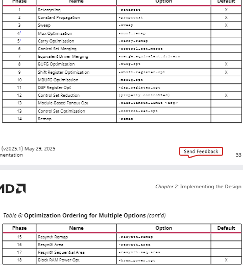 ⑨移位寄存器转流水线优化:通过将固定长度的移位寄存器转换为可动态调整的流水线结构,并优化流水线布局来提升时序性能。本优化仅在移位寄存器查找表的PHYS_SRL2PIPELINE属性设置为TRUE时生效。注意:寄存器提取/插入操作仅作用于SRL的Q端,且该优化不支持动态长度的SRL结构。