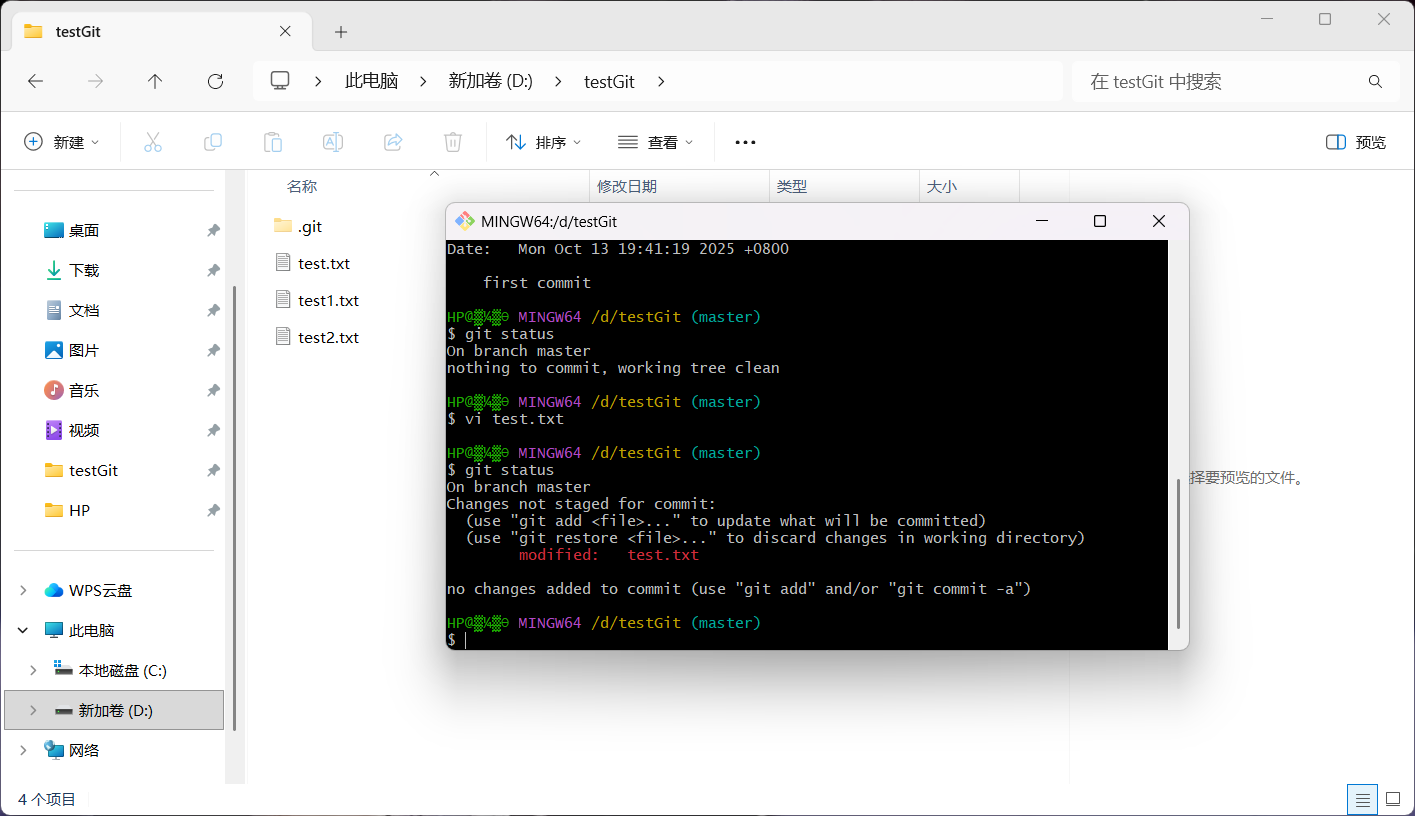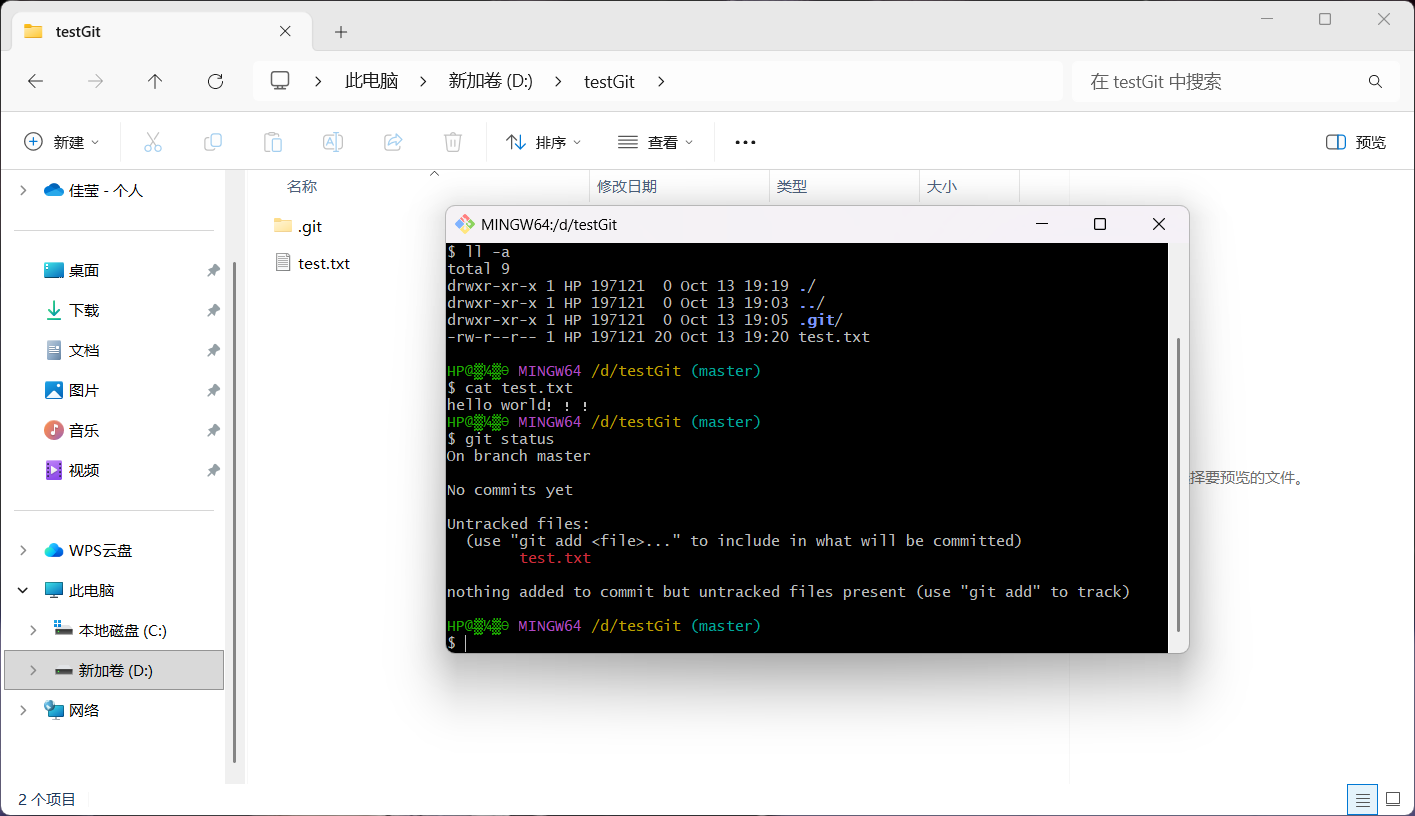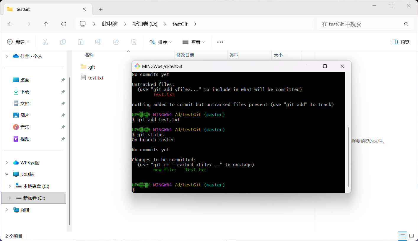 创建文件 test.txt 文件,此刻文件在工作区(WorkSpace)
