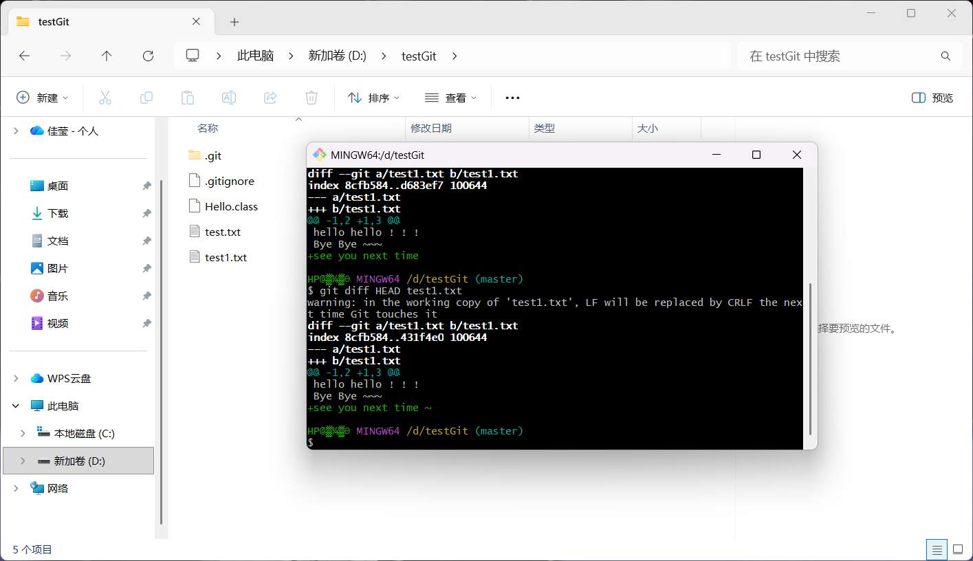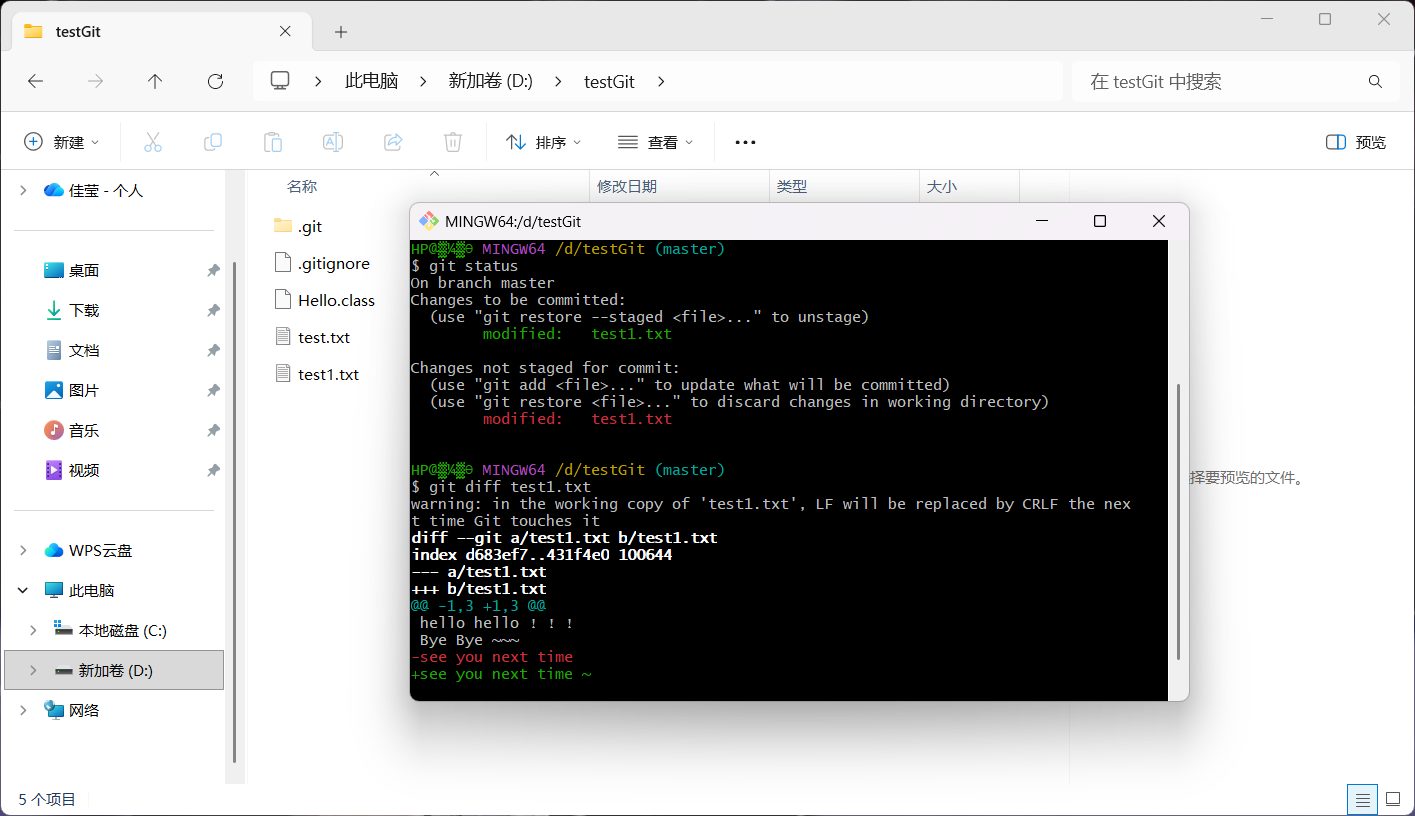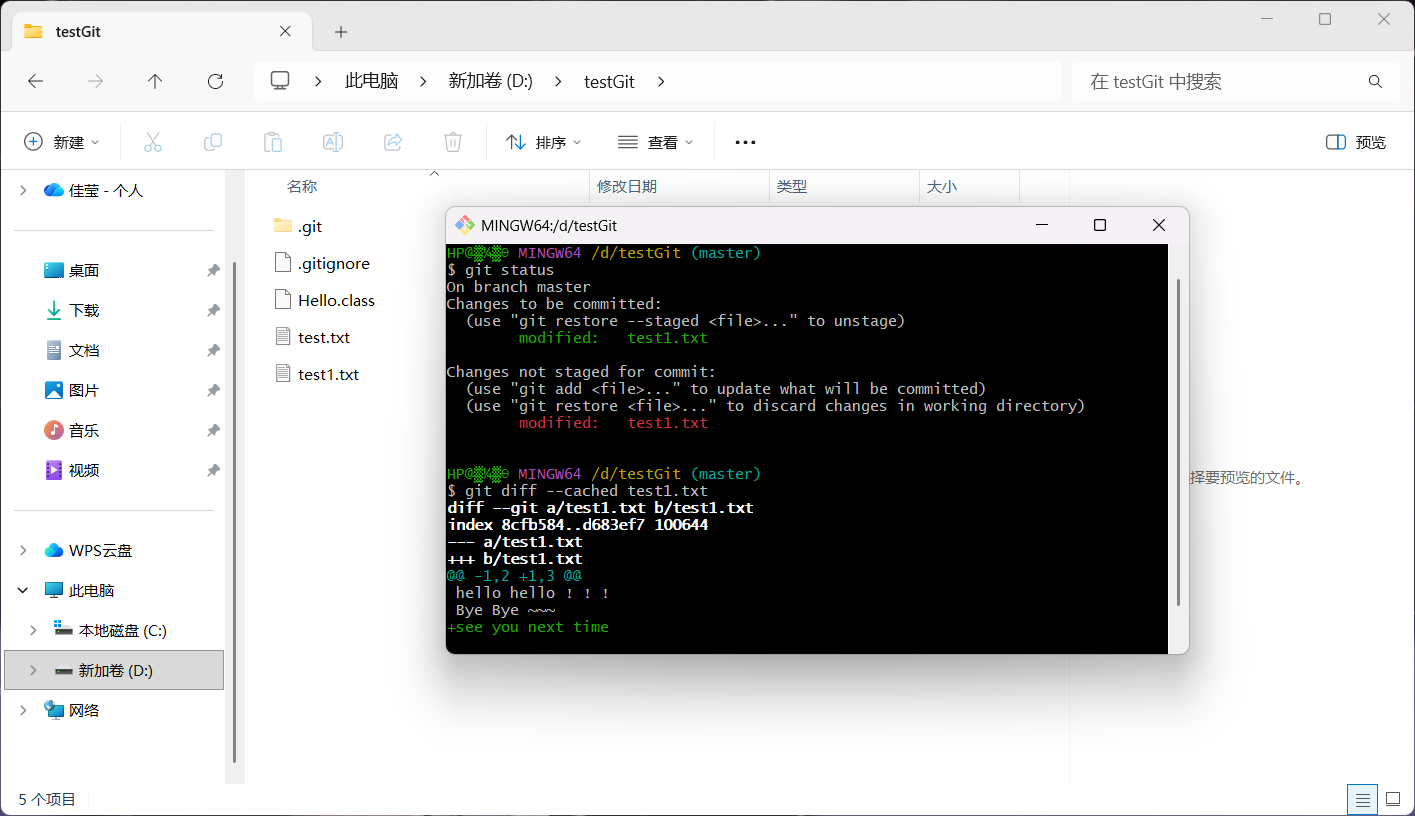创建文件 test.txt 文件,此刻文件在工作区(WorkSpace)