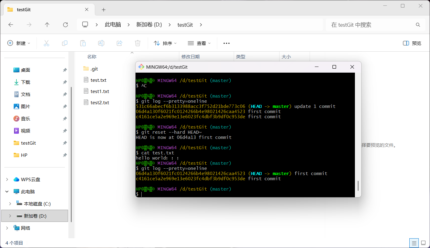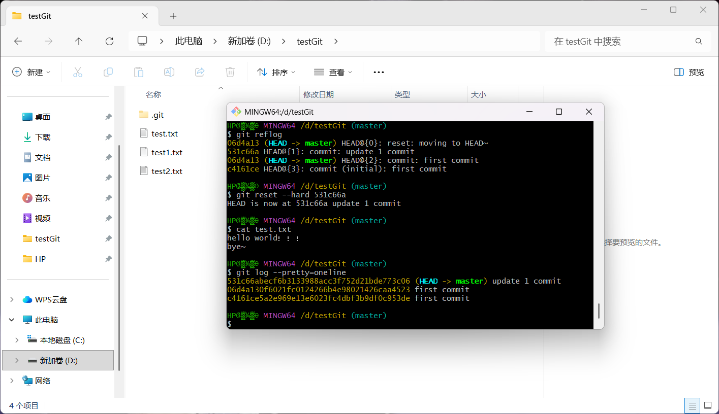 通过sha1的前四位来做回退,git reset --hard 版本号