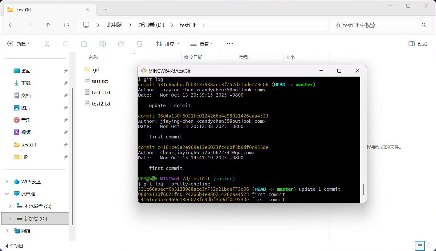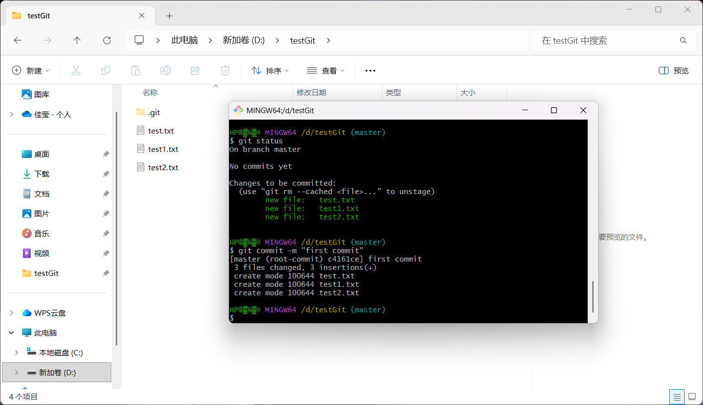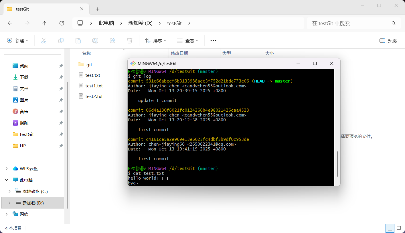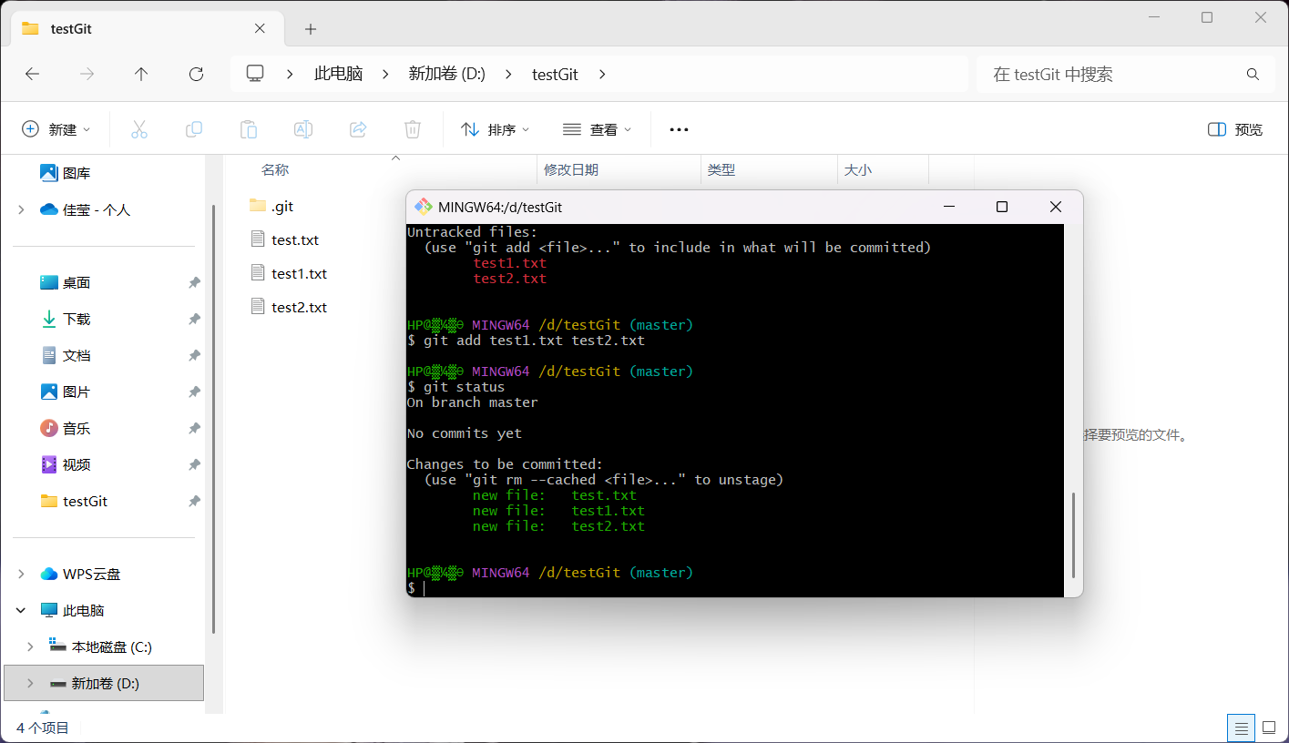 如果要提交多个文件,在add后面指定文件的列表 git add test1.txt test2.txt