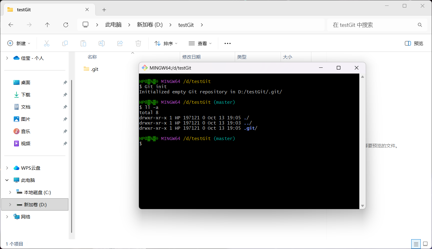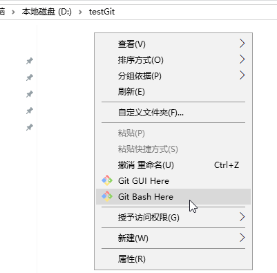 首先需要创建版本库,在某个目录下新建一个testGit版本库,右键通过命令行的方式打开窗口