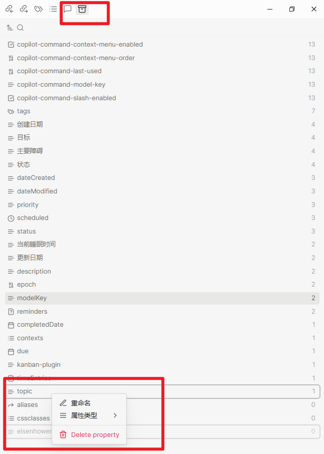 obsidian如何删除已不再使用的属性?