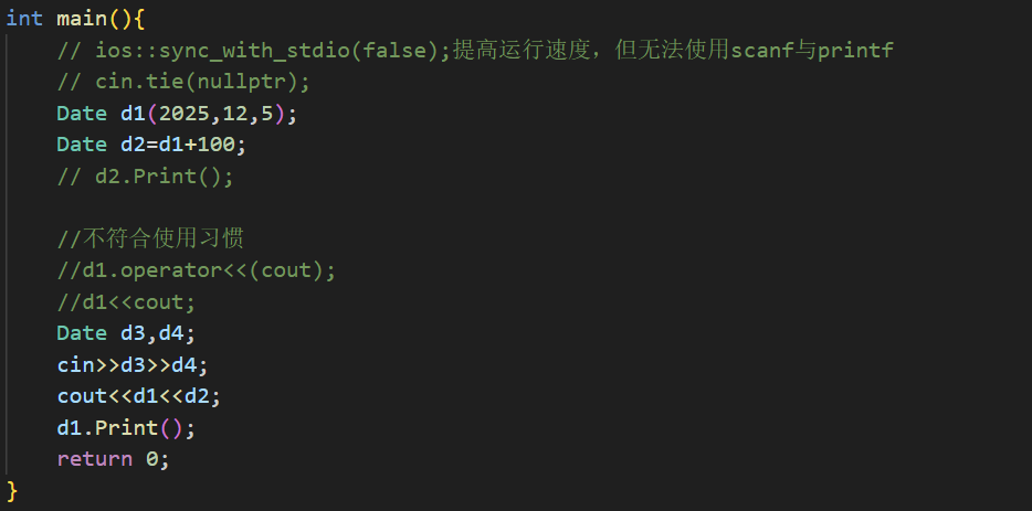 Date d2(2025,12,5);//调用带参的构造函数