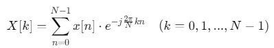离散傅里叶变换(DFT)将有限长时域序列转换为频域表示,其数学定义为: