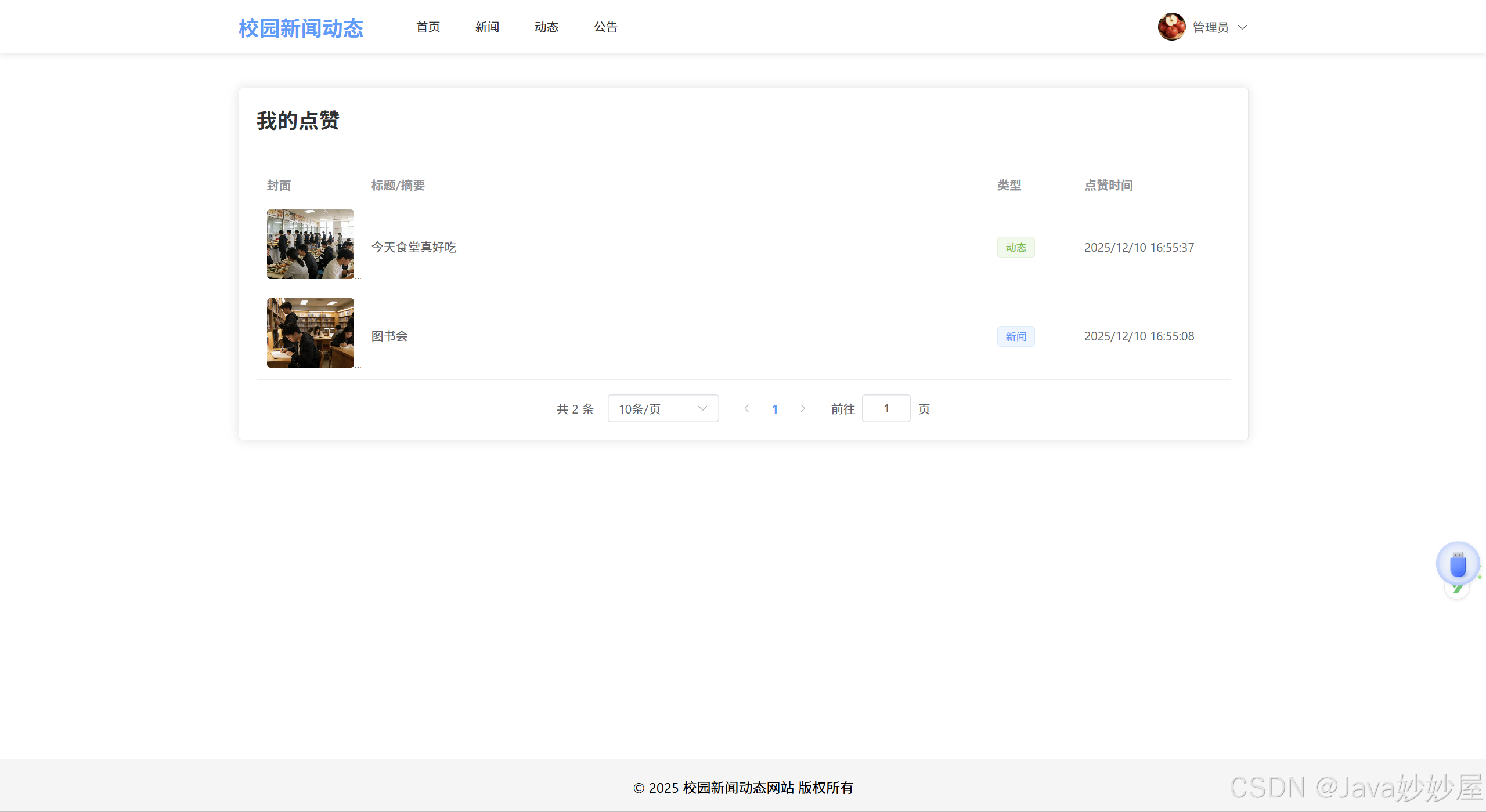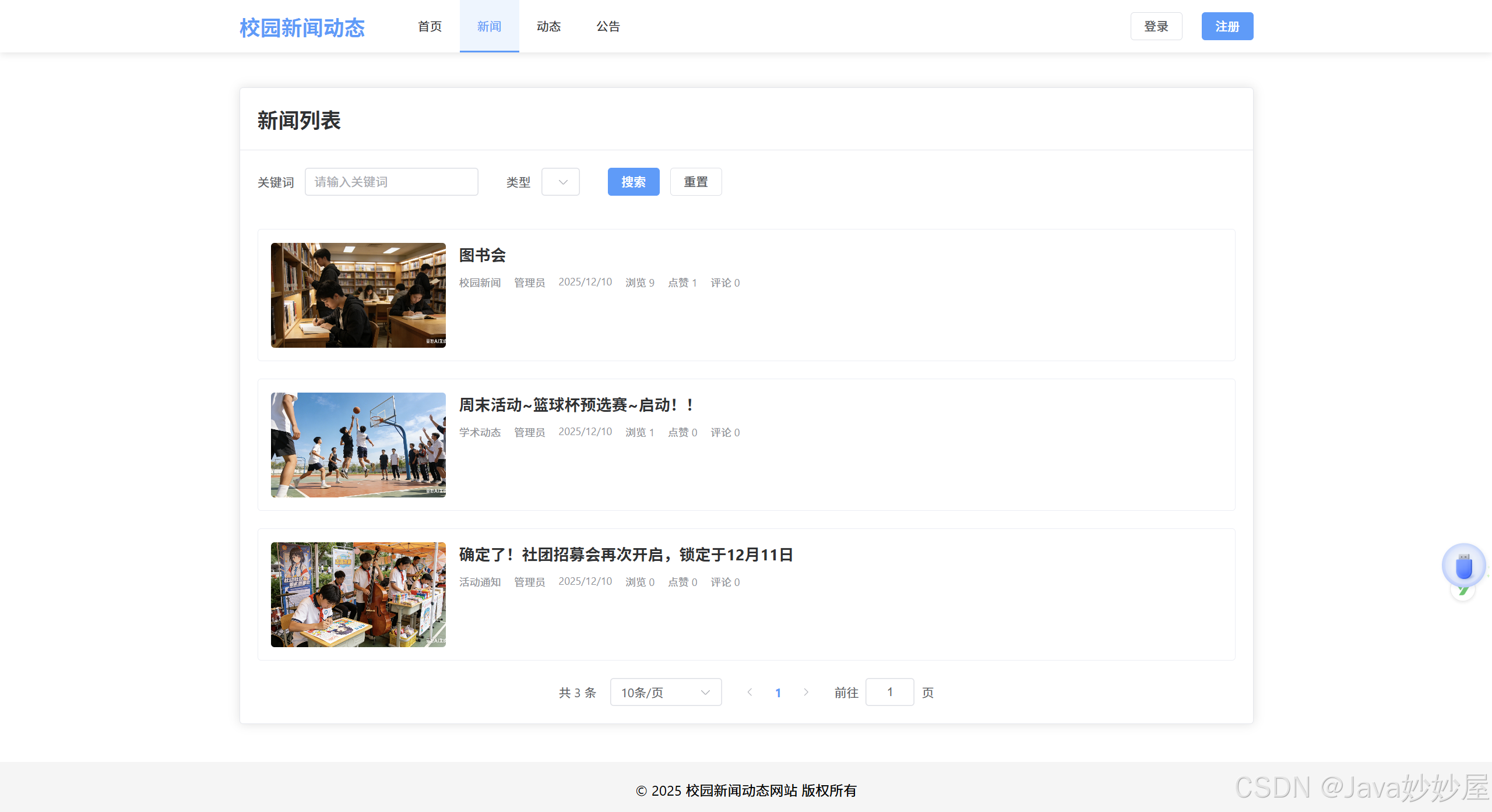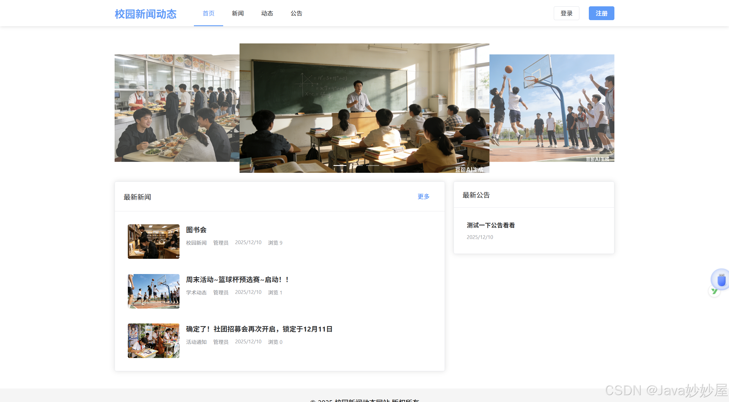 基于 Spring Boot 3.1.5 + MyBatis-Plus 3.5.8 + Vue3 + MySQL + Element-Plus 开发的校园新闻动态网站系统。