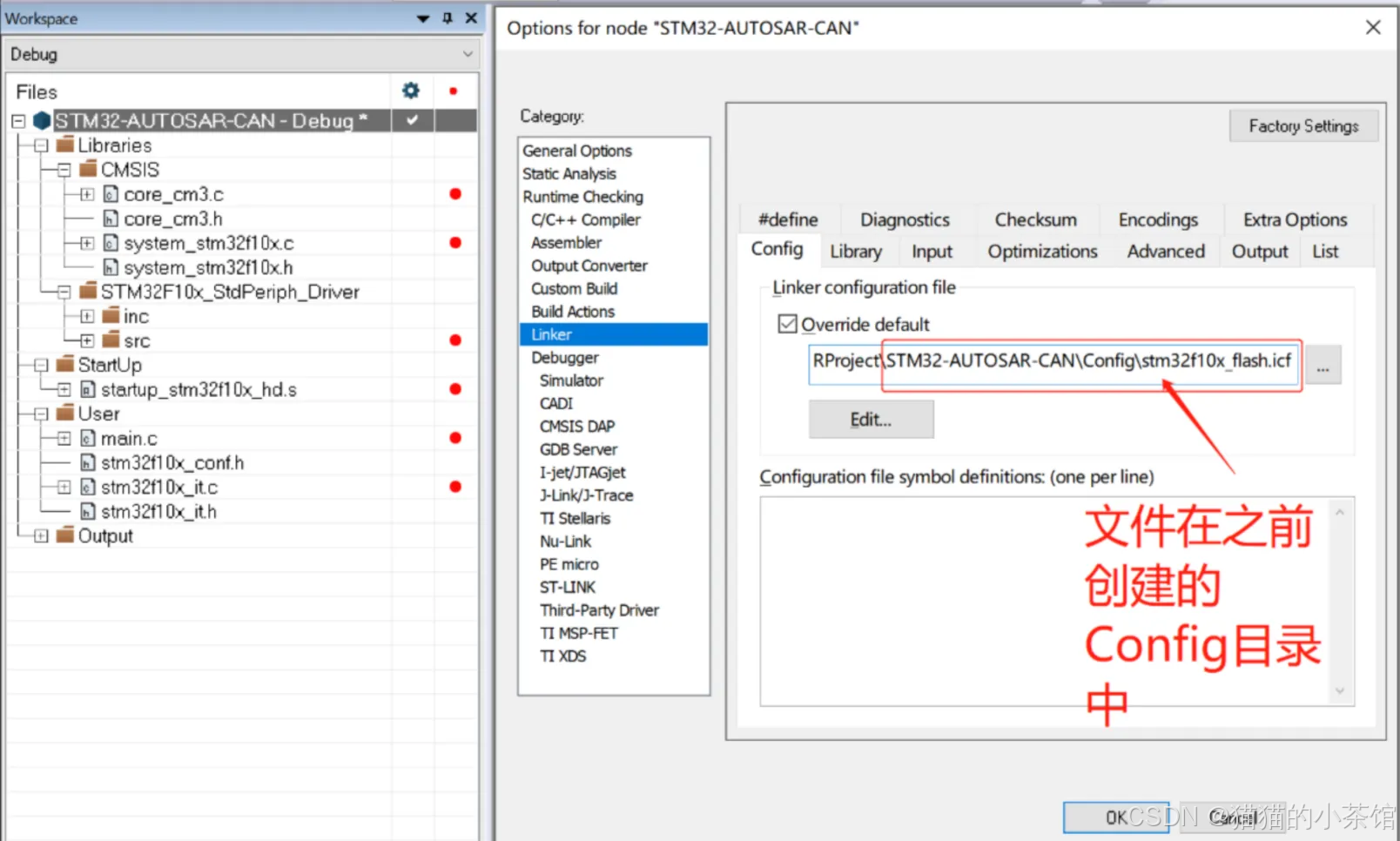stm32f10x_flash.icf文件【Project】->【Options】->【Linker】->【Config】