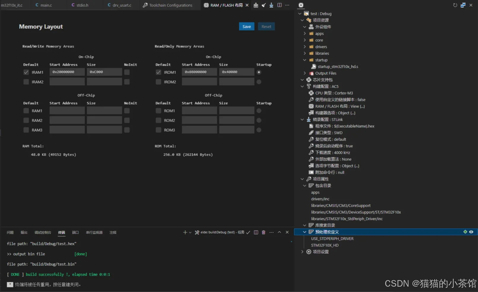 ✍️ 优点:可以在启动汇编脚本中直接设置栈 和 堆内存空间大小,并且提供可视化的RAM、ROM