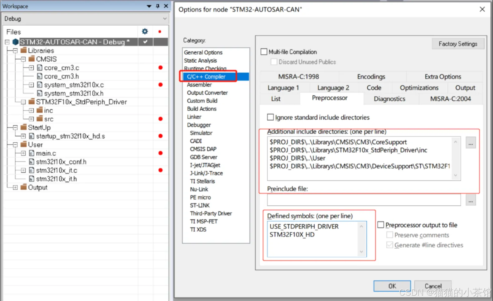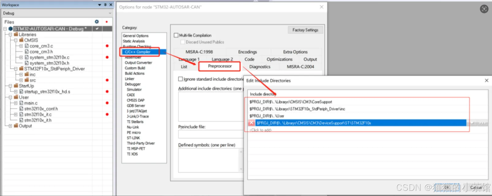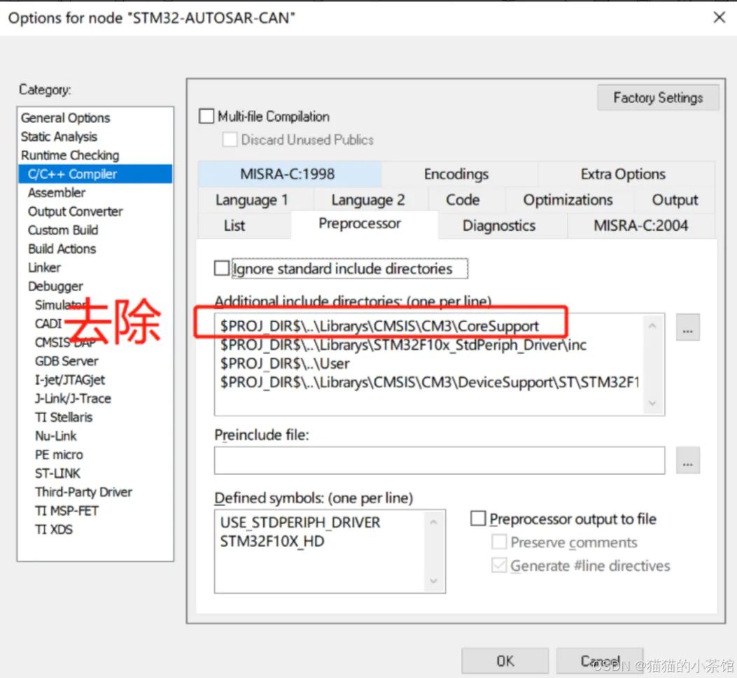 【Project】->【Options】->【C/C++Compiler】->【Preprocessor】