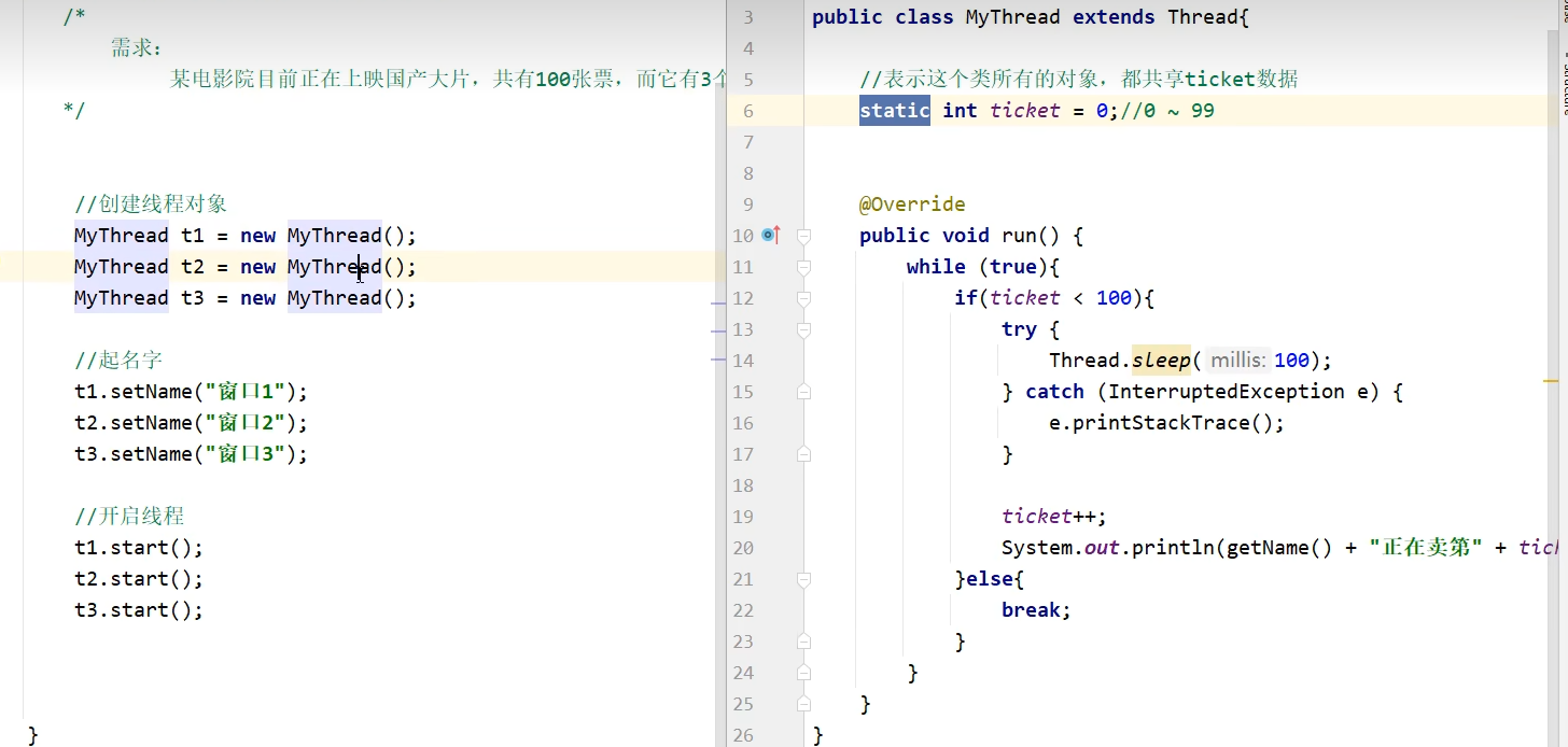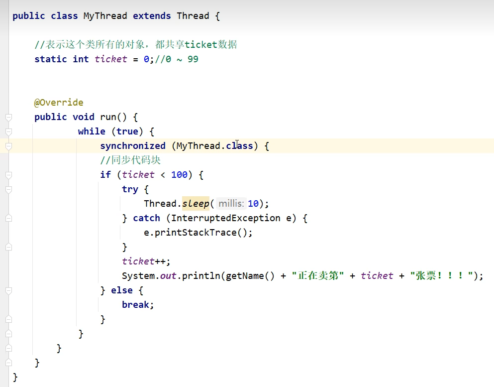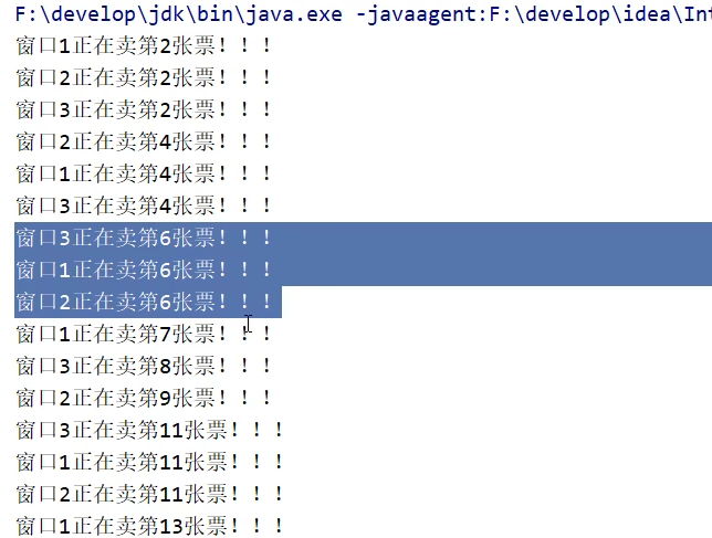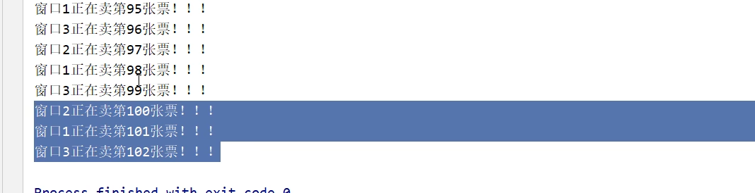 100张电影票,三个售票机,卖完这100张票。当前代码: