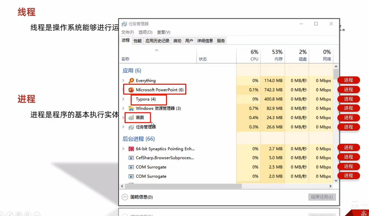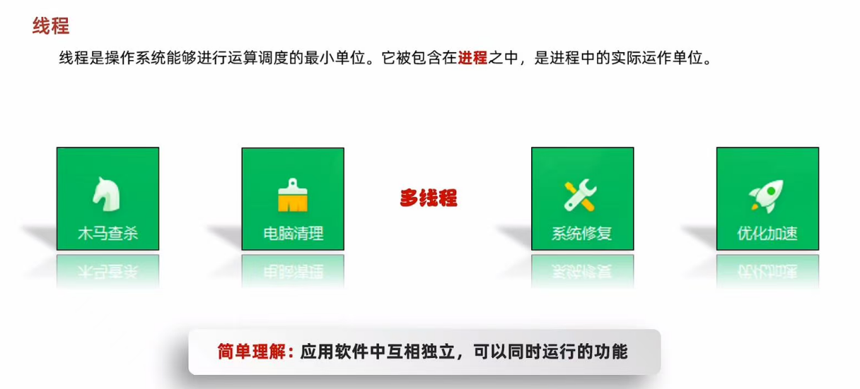 多线程可以几个线程来回切换进行。比如边听歌边聊天边上网。