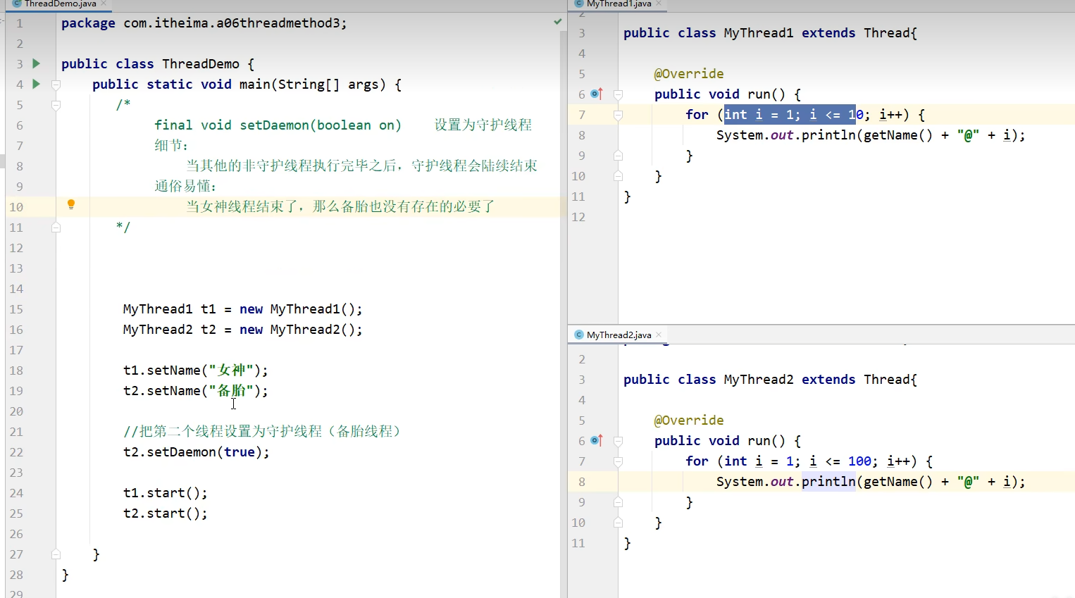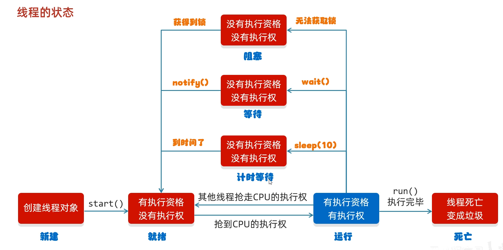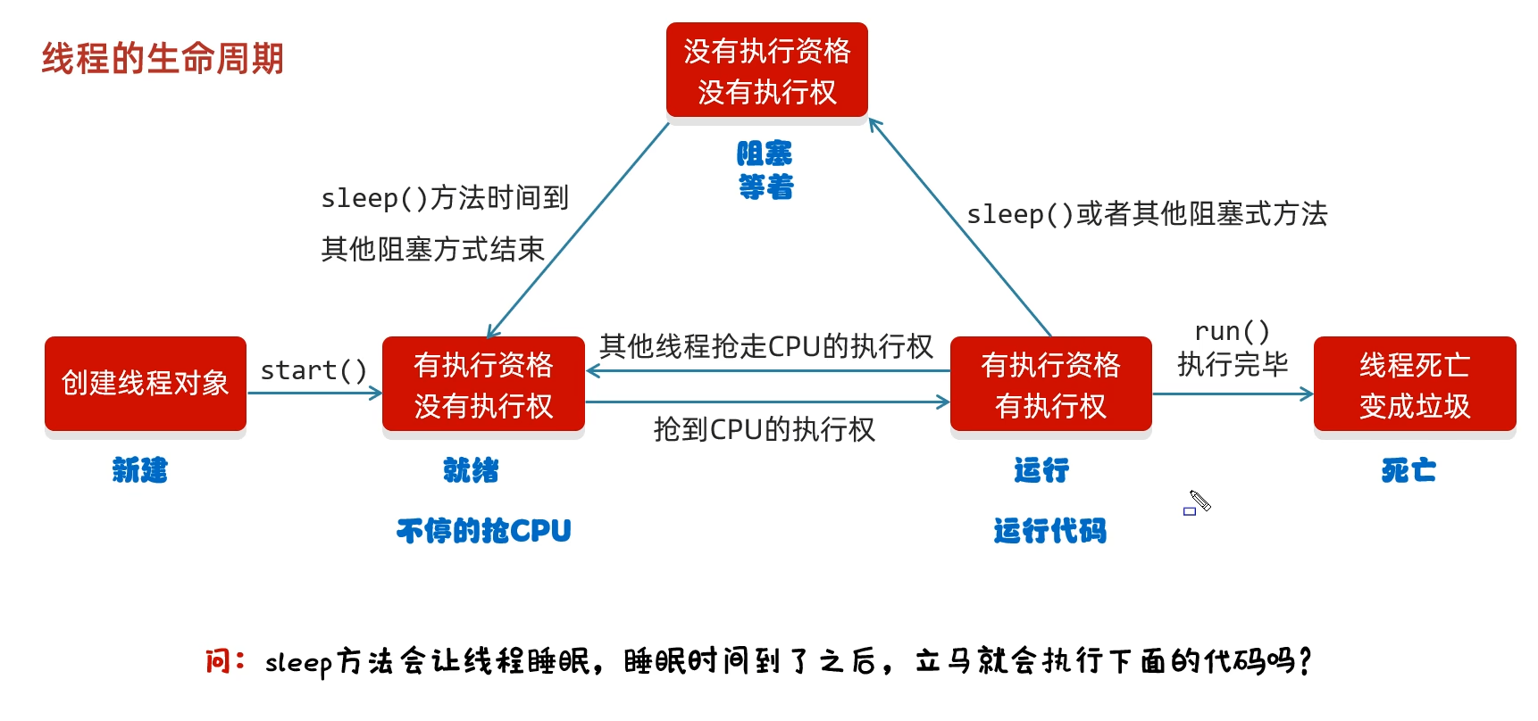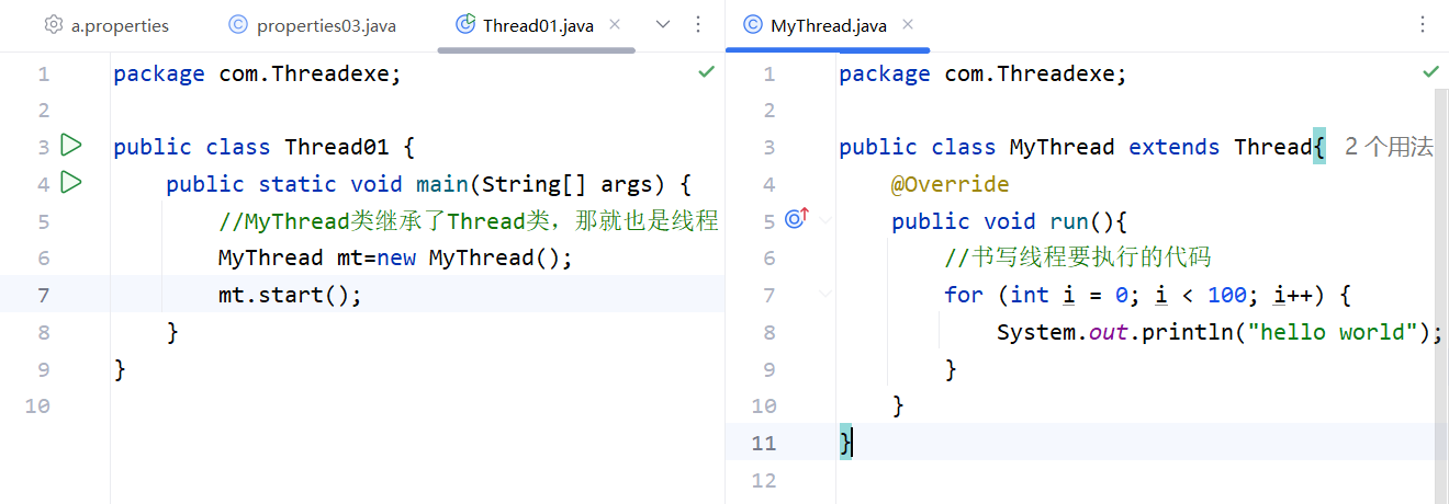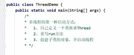 类中的run方法的方法体是线程执行的内容,但thread类的对象才是线程对象,才能调用线程的方法。