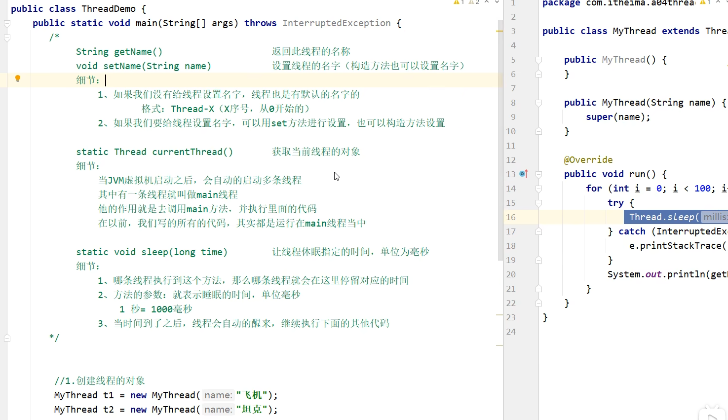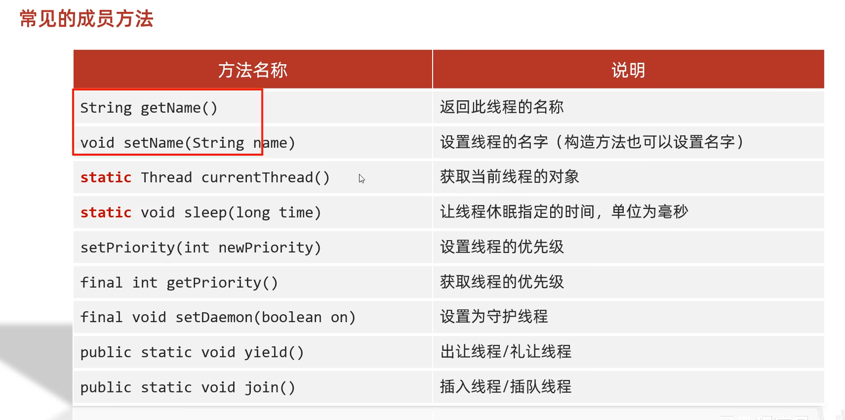3.1 getName() 、setName()、CurrentThread()、sleep()