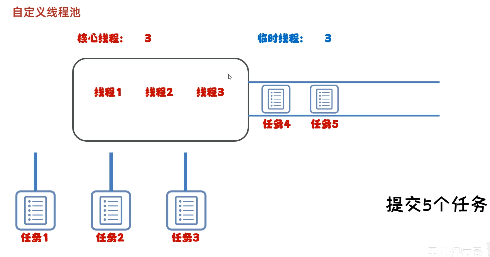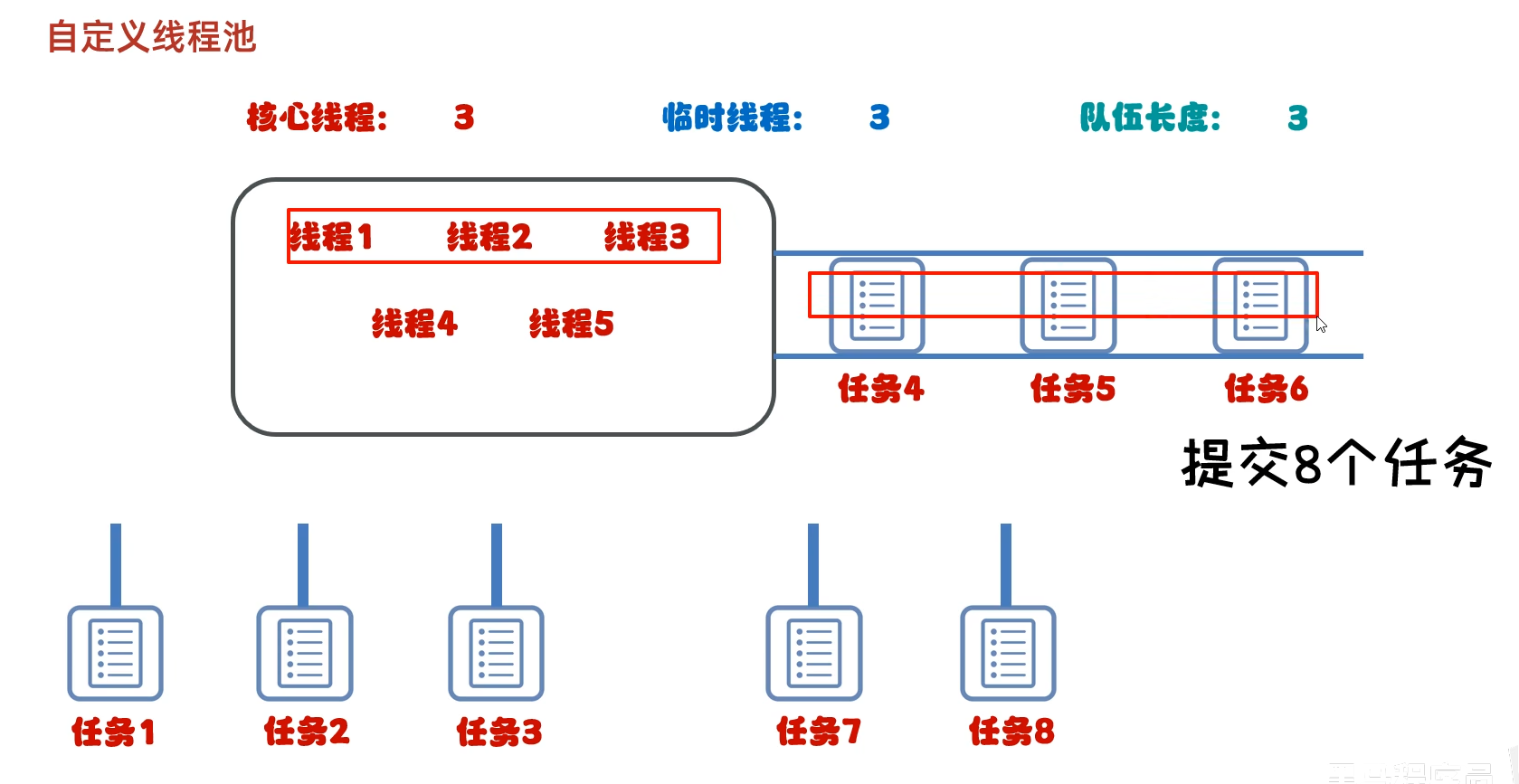 任务7交给临时线程4;任务8交给临时线程5;线程456等待。
